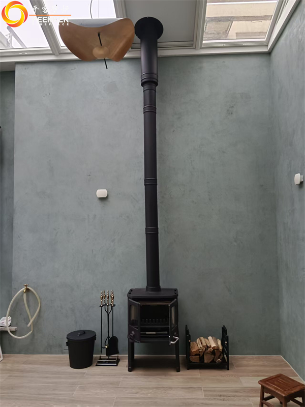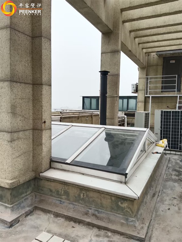 项目情况:该项目位于浙江义乌玫瑰园小区,壁炉安装在35层顶楼阳光房,烟囱穿顶出户外加高,固定在旁边立柱上,由平客项目部上门指导安装。