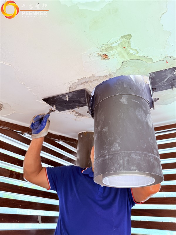 项目情况:该项目位于上海青浦区,7月份根据装修进度,平客壁炉项目部带队上门进行烟囱预埋安装,烟囱穿斜顶到户外。今天平客壁炉项目部上门进行壁炉安装,并现场点火验收。