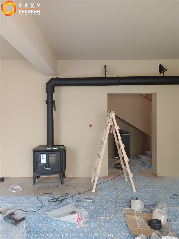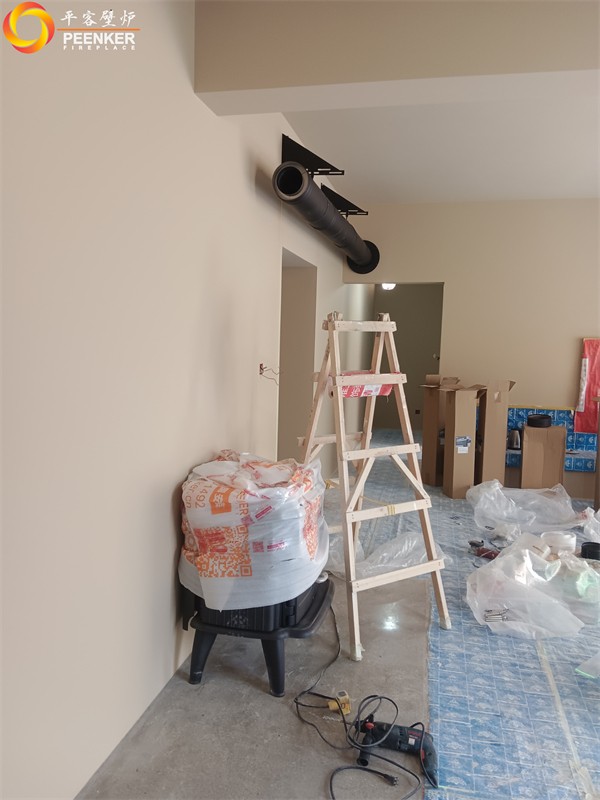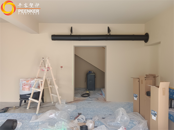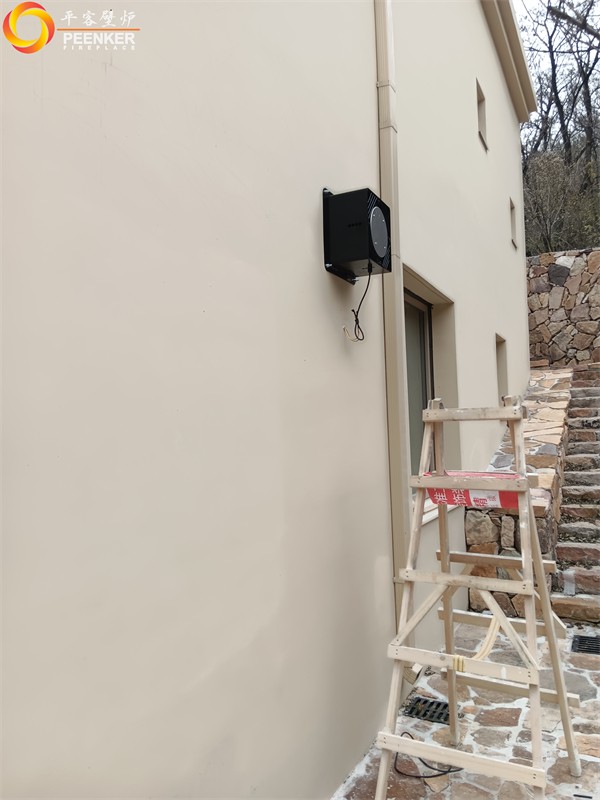 项目情况:该项目位于石家庄金华寺森林公园山区别墅,壁炉安装在客厅位置,因烟囱横向过长,户外使用壁炉风机代替不锈钢烟囱,解决抽力问题。由平客壁炉项目部上门指导安装。