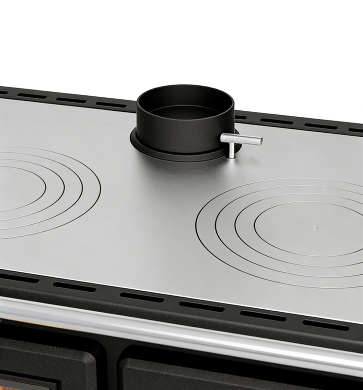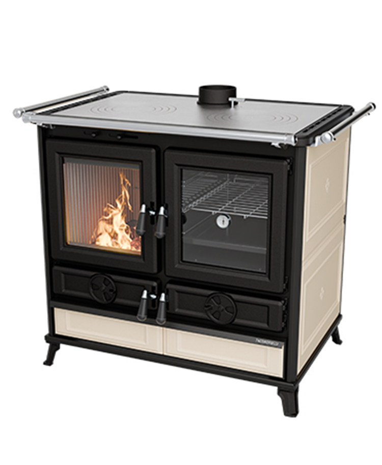 官网售价:¥63800;峰值功率13.9kw,燃烧效率86.7%,可供暖109m²,尺寸(高x宽x深)913x910x678mm,重量215Kg。壁炉以钢与铸铁精工打造,宽大换热面与加长强制烟道搭配,复古手柄、摇动格栅、搪瓷铸铁炉门配750℃耐高温陶瓷玻璃,兼具颜值与实用。顶部铸铁烹饪板、带温感烤箱门,搭配43 升全景搪瓷烤箱,储物盘等一应俱全。外饰甄选优质陶瓷与铸铁,实用性能与复古质感完美融合。